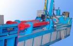 無縫合金彎頭推製機是一種推製彎頭的管件機械設備。主要是為解決現有壓製彎頭壁厚差大等問題而設計的。它包括機架、中頻加熱器、液壓係統,固定台固定在機架的後端,固定台的中心有孔,油缸固定在固定台上,油缸的有杆腔和無杆腔分別通過管線與液壓係統連接,推頭與各油缸缸杆連接固定,推頭中心有孔,中頻加熱器與加熱圈有導線連接,後部有楔鍵孔的芯杆從加熱圈和推頭中心的孔及固定台中心的孔中穿過,楔鍵穿在芯杆的楔鍵孔中,活動半圓卡板由上、下兩個半圓卡板組成,活動半圓卡板的上、下兩個半圓卡板都裝在推頭的前表麵上同時套在芯杆上並與芯杆留有間隙。優點是所生產的彎頭壁厚均勻。
