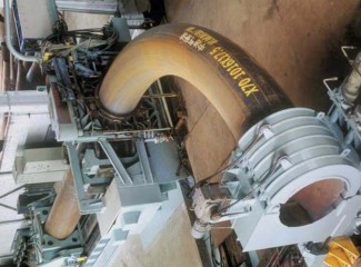 設備主要包括:機座、主油缸支板(包括主油缸)、活動推板、彎管夾輪平台、彎管搖臂、搖臂轉軸、彎管組合夾盤、中頻變壓器支架、中頻電源、中頻變壓器、電氣控製係統等組成。
